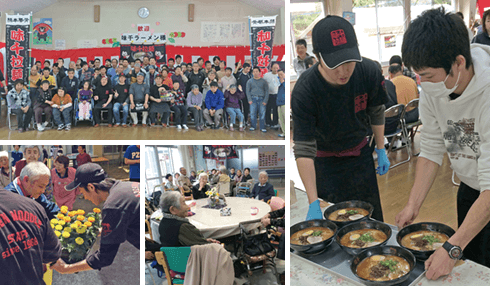 創業40周年を迎えた2008年、地域の皆様に少しでも恩返しができないかと思い福祉施設・障害者施設・介護施設を定期に訪問。機材・食材を持込んでお店の味をそのまま再現しラーメンを無償でご提供。40周年の年は40カ所を訪問。