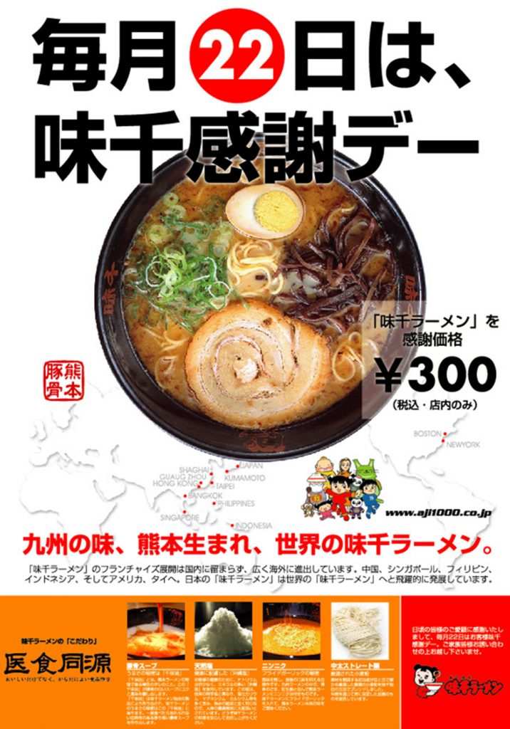 ※都合により味千感謝デーが店休の場合や、営業時間が短縮されている店舗もございます
