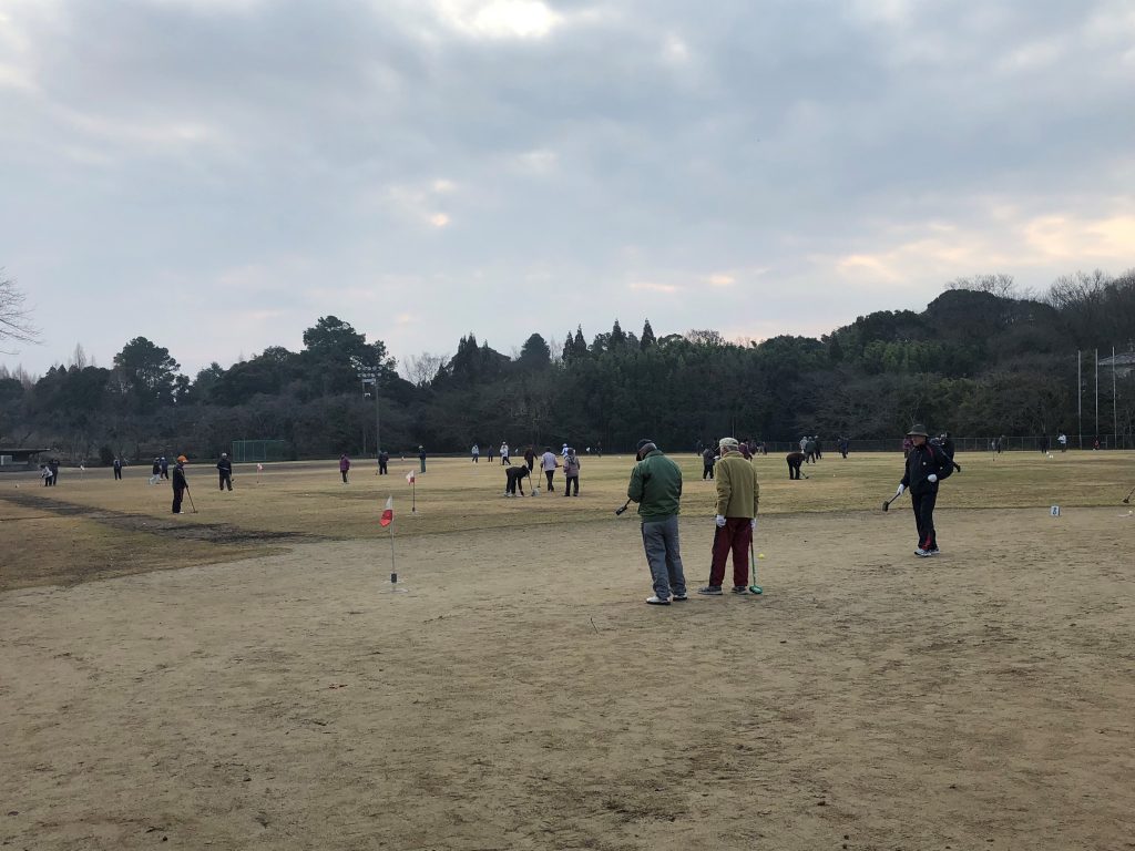 冬の寒空の中約120名のグラウンドゴルフ愛好家の方々が参加され、楽しくプレーされていました。