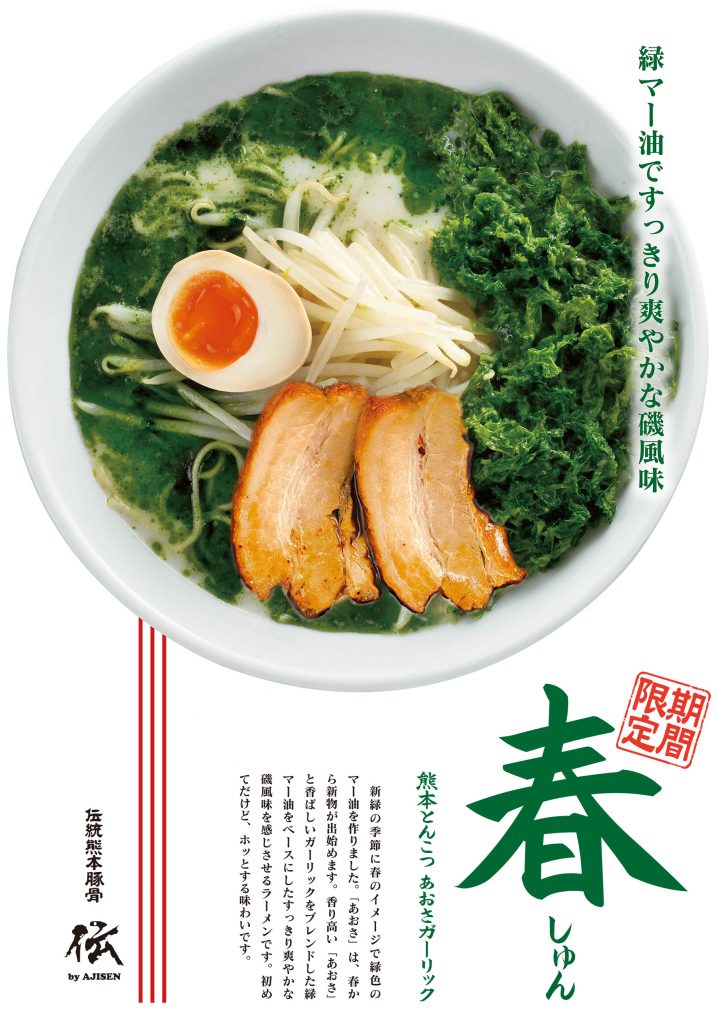 伝統熊本豚骨 伝 で季節限定メニュー 『春』が3月1日より発売開始となりました。