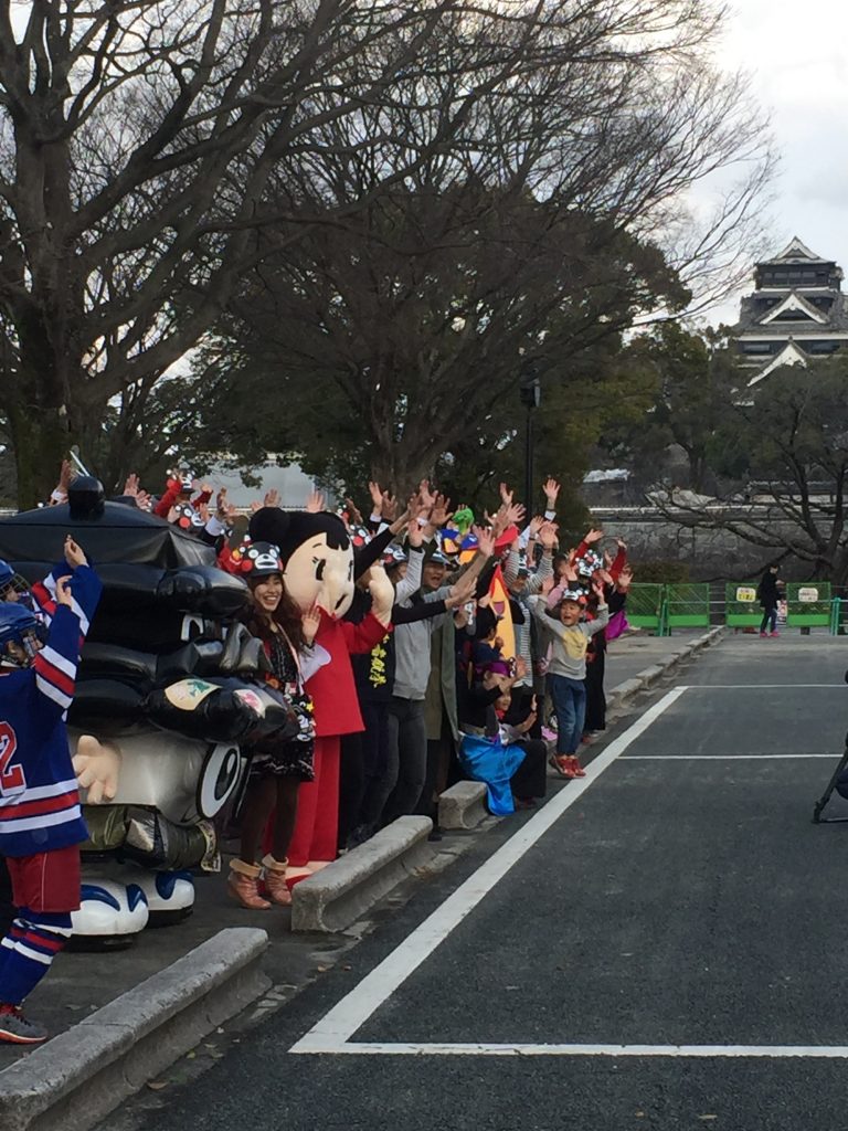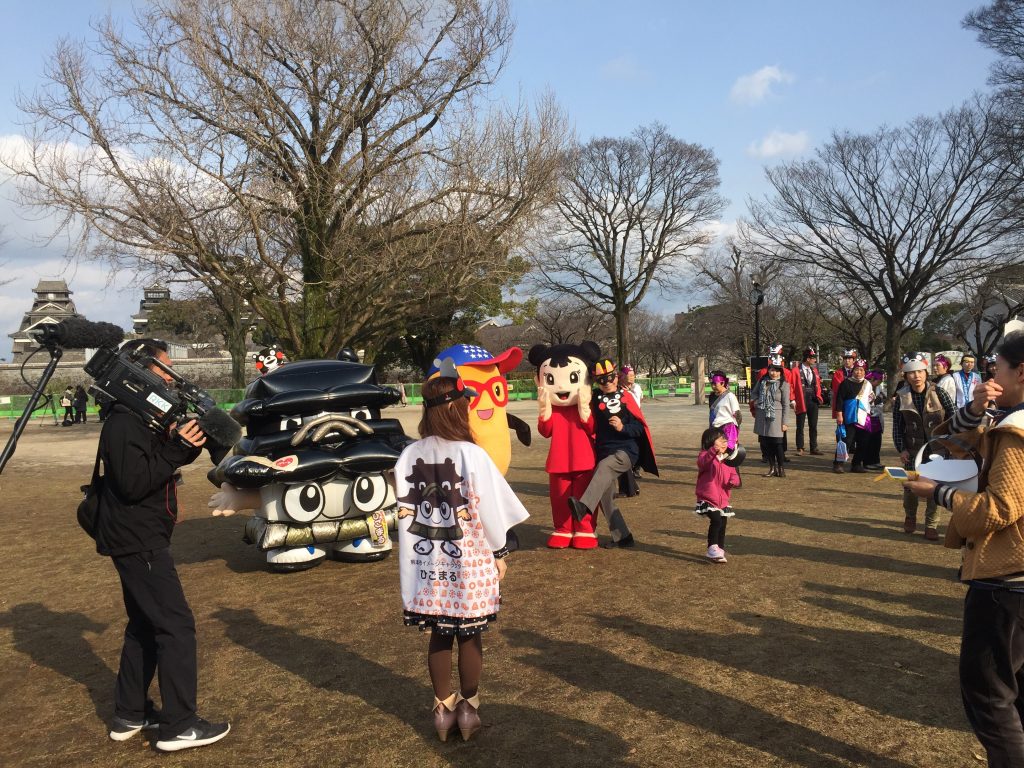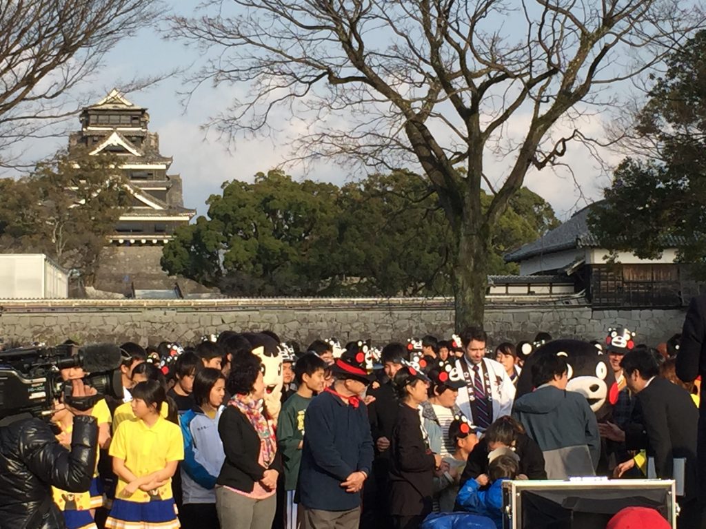 くまモンや大使館マスコット、熊本城おもてなし武将隊と一緒に味千ラーメンゆるキャラと【チイちゃん】も「くまモン体操」を一緒に踊ってきました。ご参加の熊本県民有志の皆さんや、高校生・中学生に囲まれ楽しく撮影ができました。