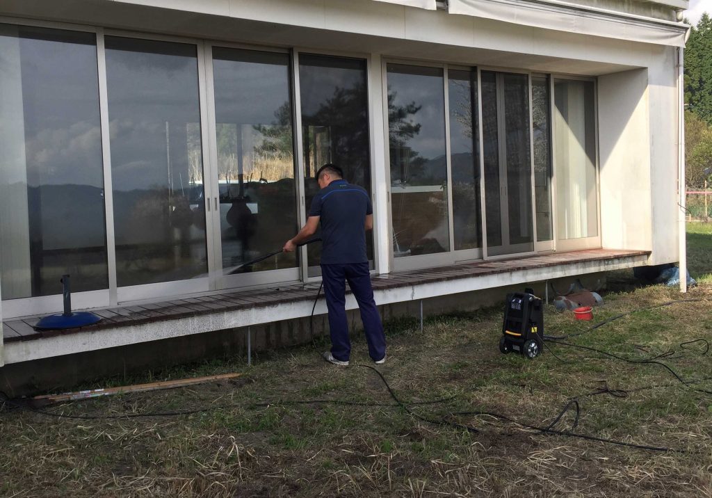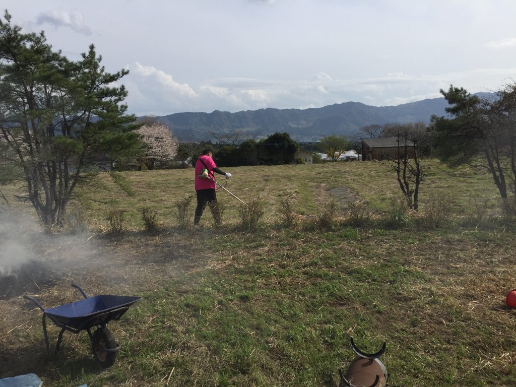 昨日16日、数人で阿蘇郡高森町にある重光産業保養所の清掃活動に行ってきました。地震の被害は少なかった高森町ですが、3年前から芝に阿蘇山の火山灰が降り積もり、芝の状態が良くなく雑草が生えるようになり、清掃作業も一苦労です。