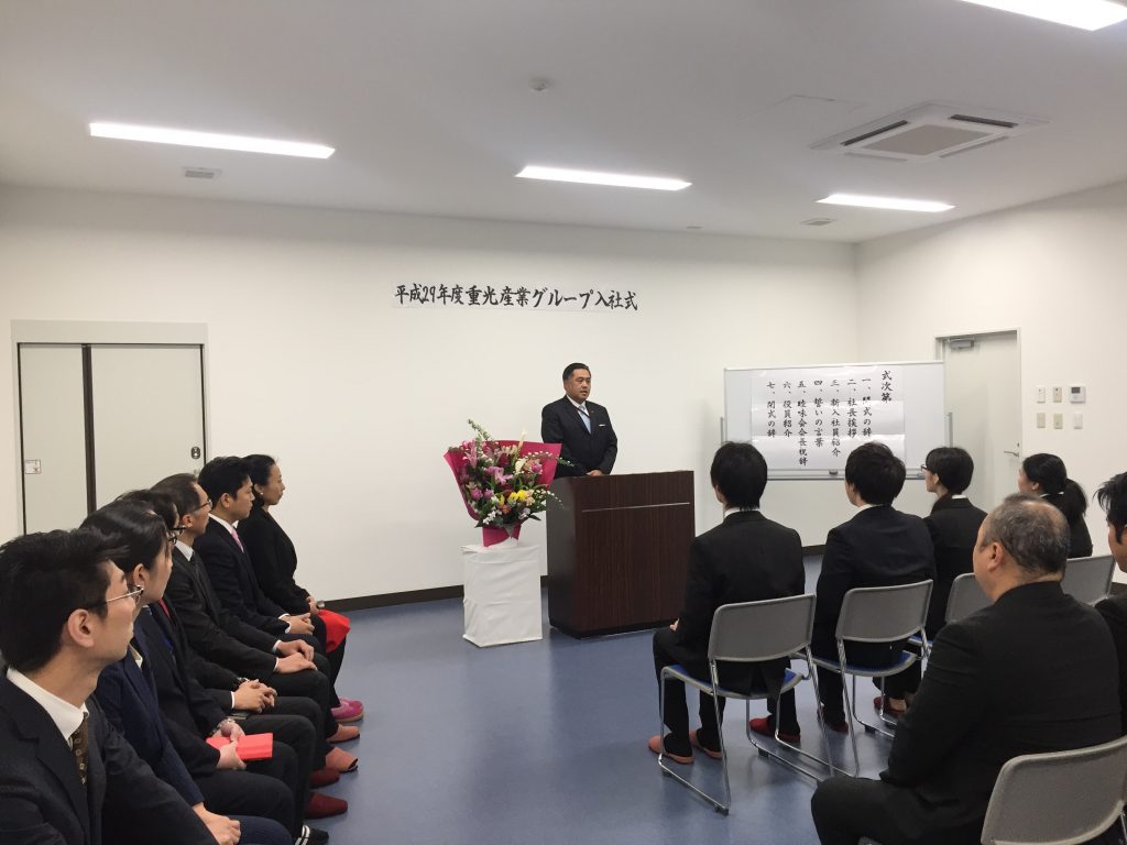 本日4月1日は平成29年度の重光産業グループの入社式が、新社屋会議室にて行われました。