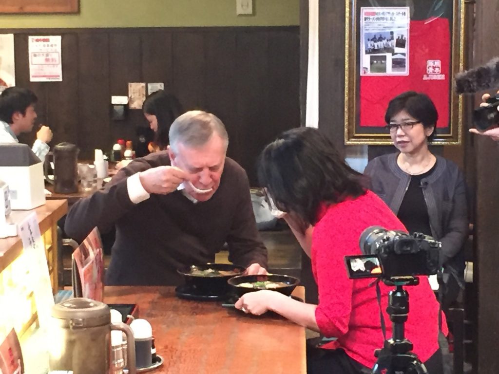 先週18日(土)内閣官房の国際広報事業として官邸国際広報室が主体となり、日本の文化や技術を国際社会に広く発信するため、アメリカの公共放送サービスPBSと共同で日本の特集番組『This is America & The World(仮)』の撮影が味千本店で行われました。