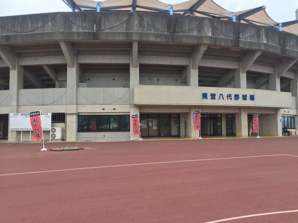 視察に県営八代野球場にいってきました、夏真っ盛りの高校生に負けない中学生の硬式野球大会。