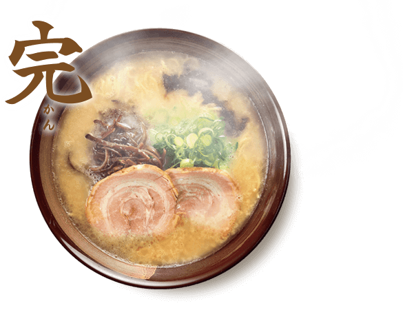 白濁とんこつスープに香味油とニンニクチップを浮かべた熊本のソウルフードの一つ”熊本ラーメン”。わさもん(新しいもの好き)の熊本県民に50余年にわたって食べられ、今も愛され続けるこの味を、私たちは未来を担う子ども達へと伝承していきたいと願っています。