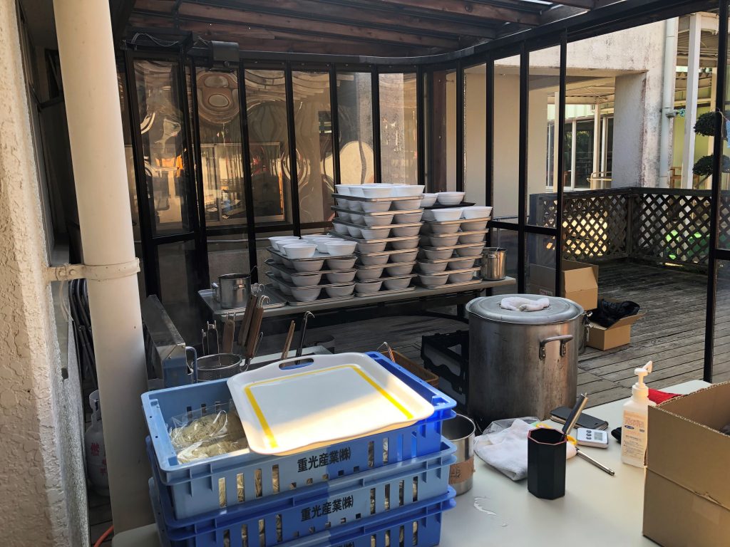この日を楽しみにしていた様子で、ラーメン作るを準備作業から見学が大勢。