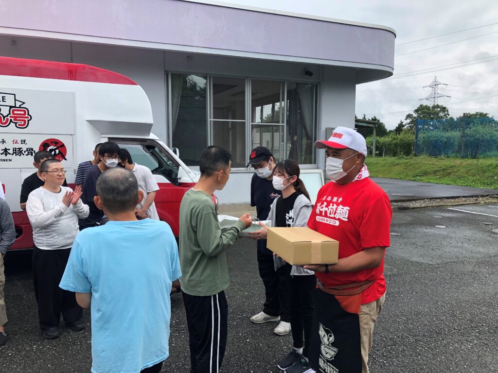 入居者・職員の皆様へ味千ラーメンをご提供いたしました、皆さんすごく喜んでいただきました