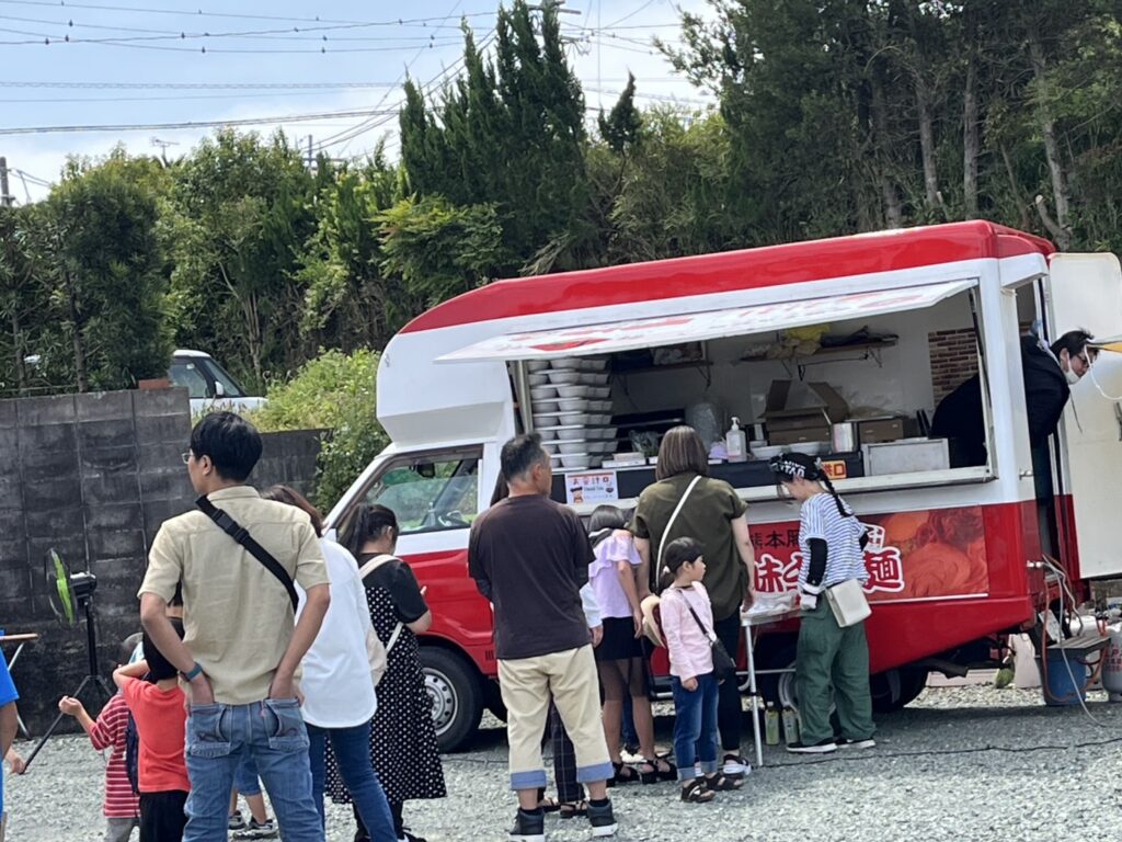 味千拉麺キッチンカーで訪問、1杯100円で販売(お持ち帰りは別途)し、