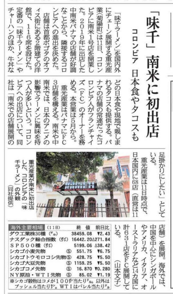 4月12日南米コロンビアの首都ボコタに1号店となる味千拉麺ボゴタ店がオープンしました。