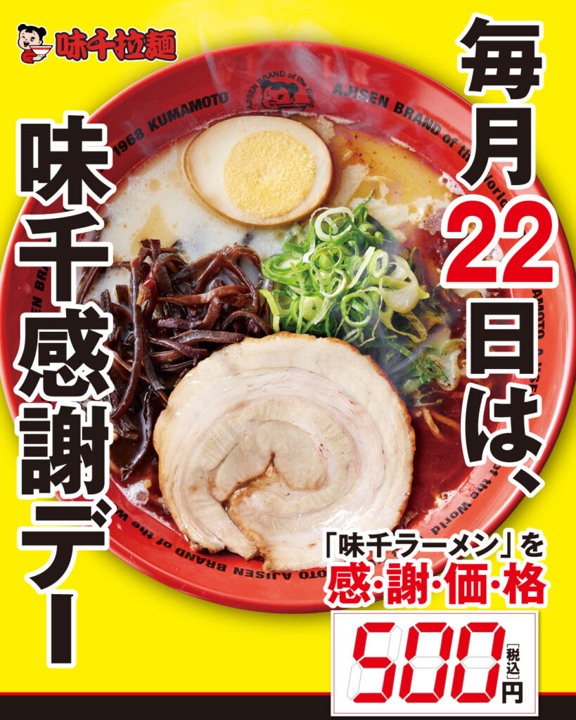 毎月22日は味千感謝デー