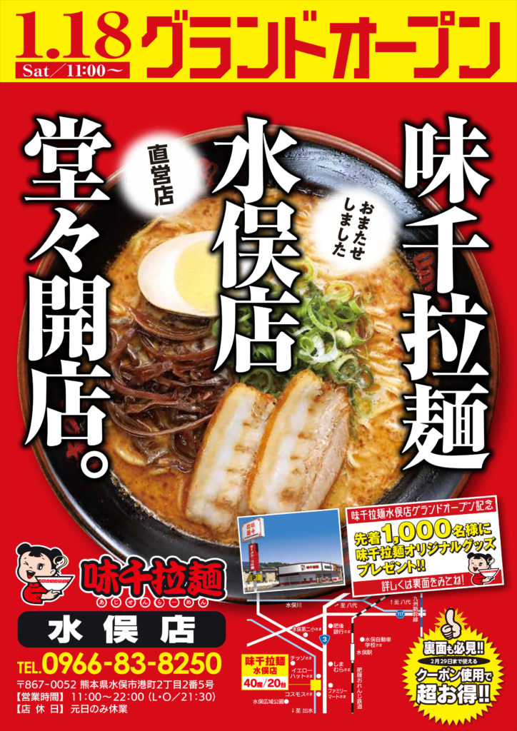 ※全国の味千拉麺各店舗・地域により味千ラーメンの1杯の感謝デー価格、営業時間に違いがある場合がございます。申し訳ございませんがご了承の程、お願い致します。