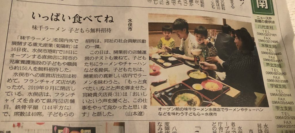 本日4月13日火曜熊本日日新聞に掲載頂きました