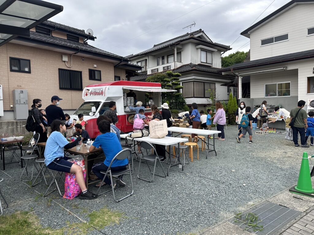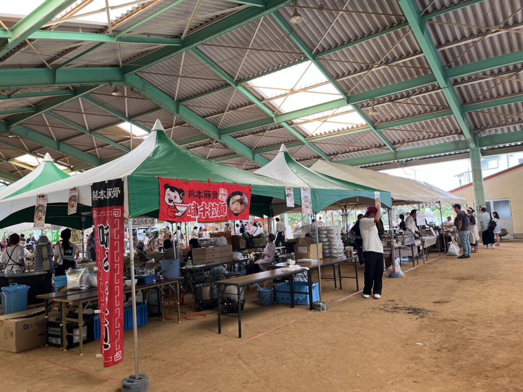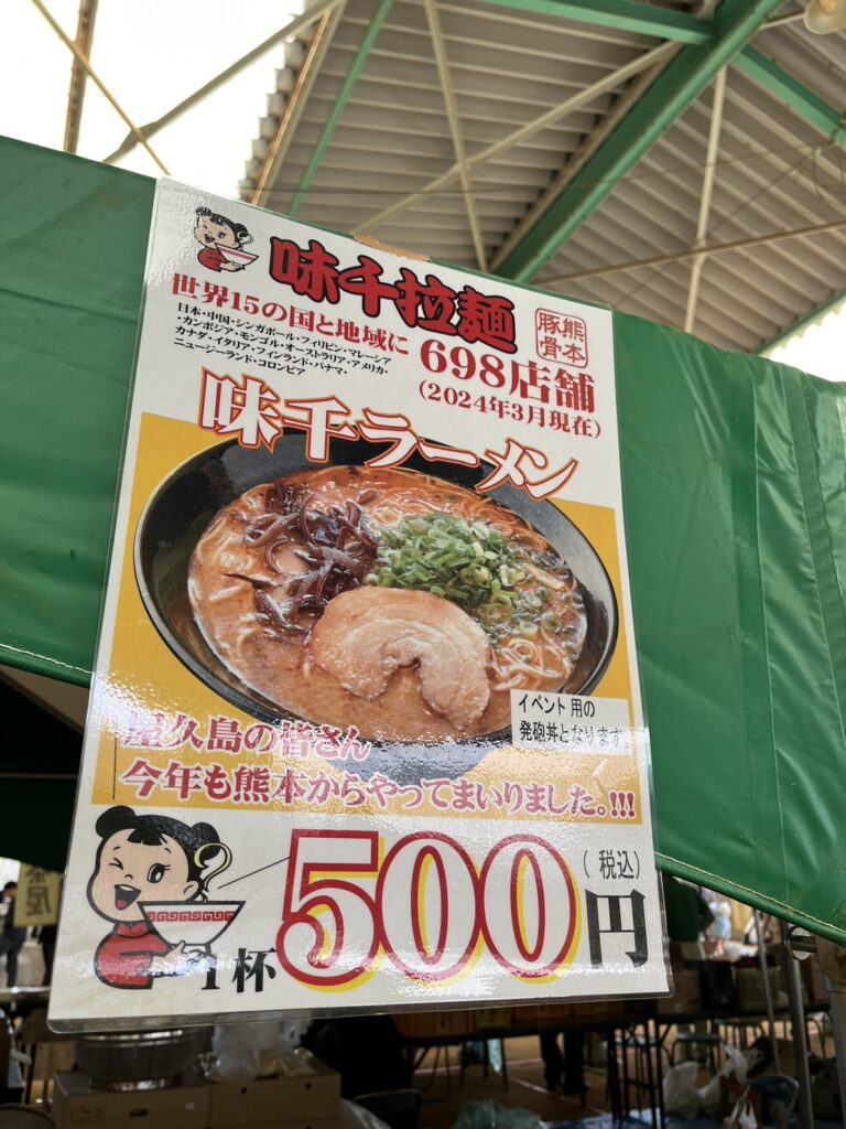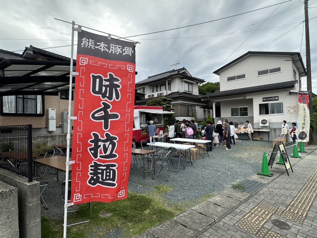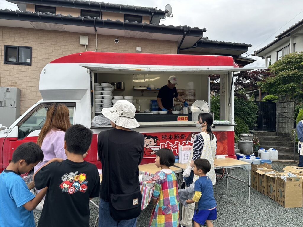 味千拉麺キッチンカーで訪問、1杯100円で販売(お持ち帰りは別途)し、
