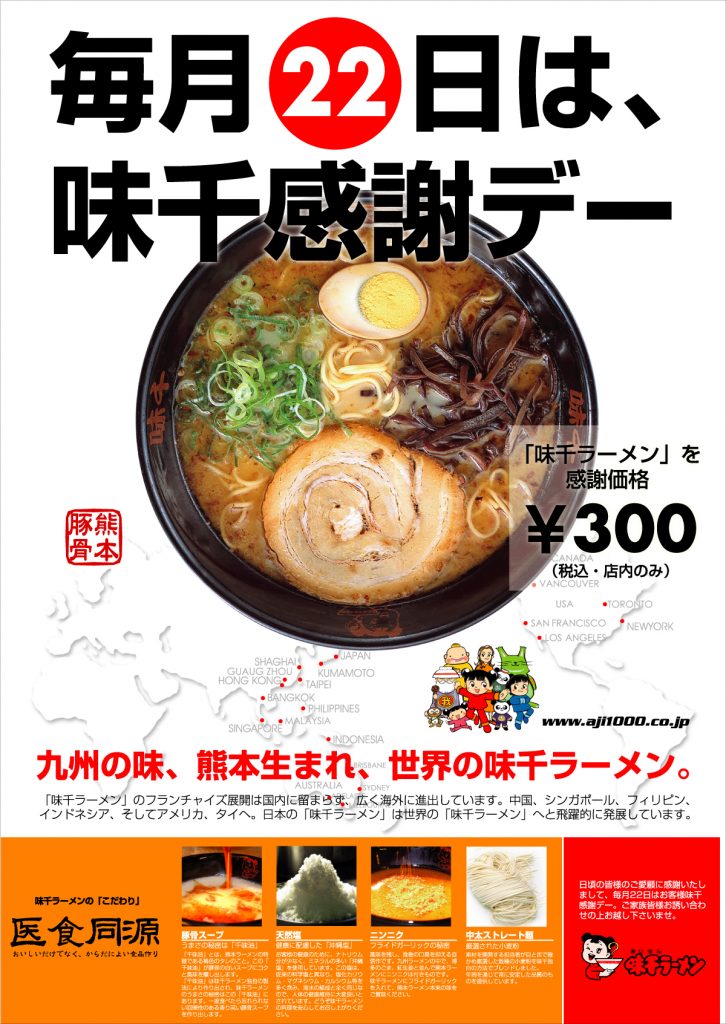 熊本豚骨味千ラーメンをお召し上がりください!!