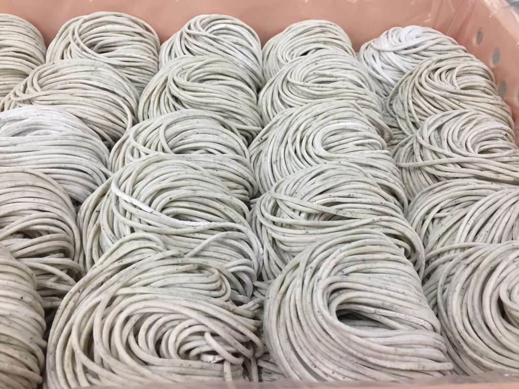 海苔麺(海苔をねりこんだ麺)が採用・商品化されて販売されています。。