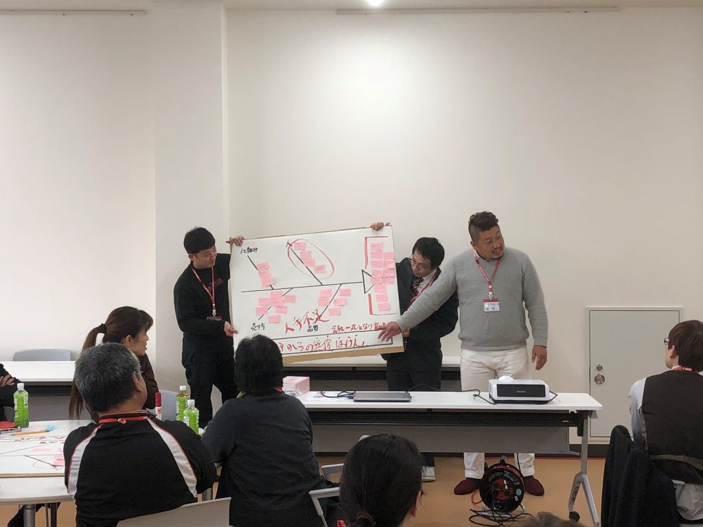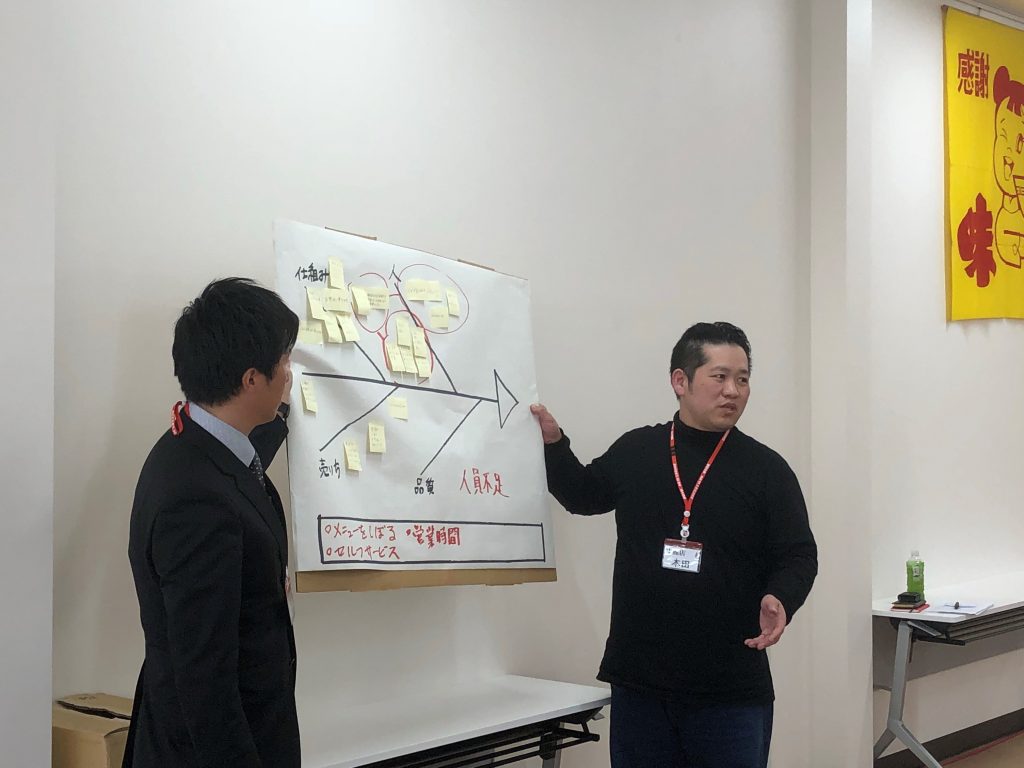 各店舗での問題点や、本部からの新商品などの説明をしています。
