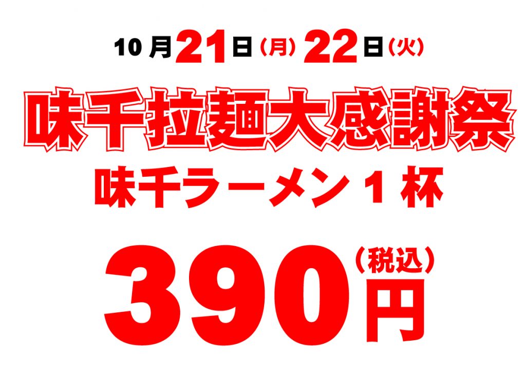 本日10月21日・明日22日は味千拉麺大感謝祭として