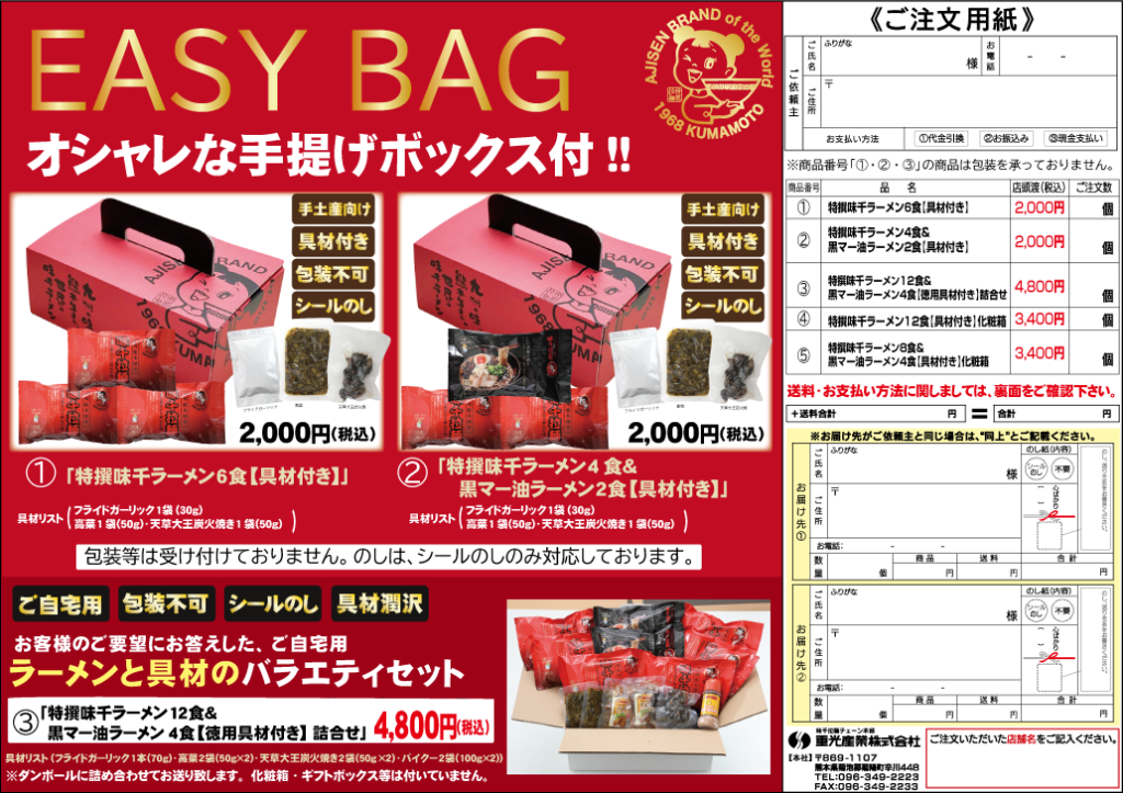 ・特撰味千ラーメン4食&黒マー油ラーメン2食【具材付き】EASY BAG