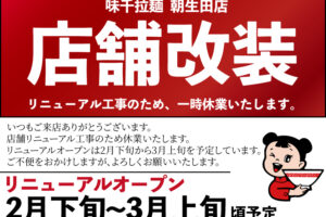 いつも 味千拉麺 朝生田店 をご利用いただき、誠にありがとうございます。